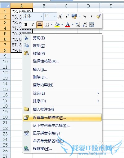 单击鼠标右键,选择设置单元格格式命令。然后在弹出的对话框中选择数值选项。