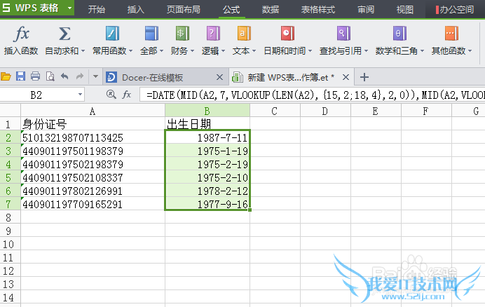 WPS下excel如何快速提取身份证中出生日期-Excel教程