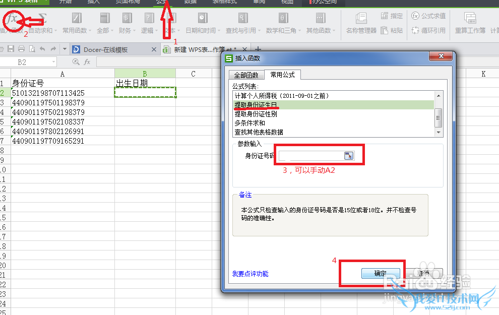 WPS下excel如何快速提取身份证中出生日期-E