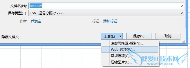 在出现的另存为对话框中,选择“工具-Web选项”;