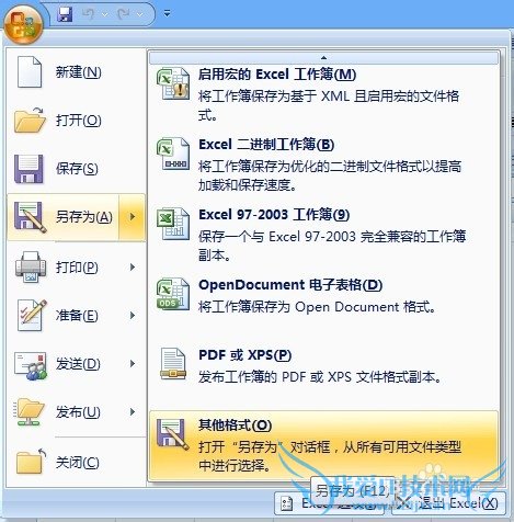 想要保存.csv文件时,选择“Office按钮-另存为-其他格式”;