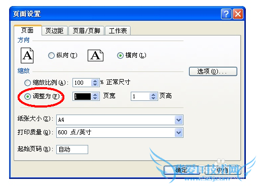 然后再“页面”标签里面的点选“调整为”,后面的数值保持默认的1页宽,1页高