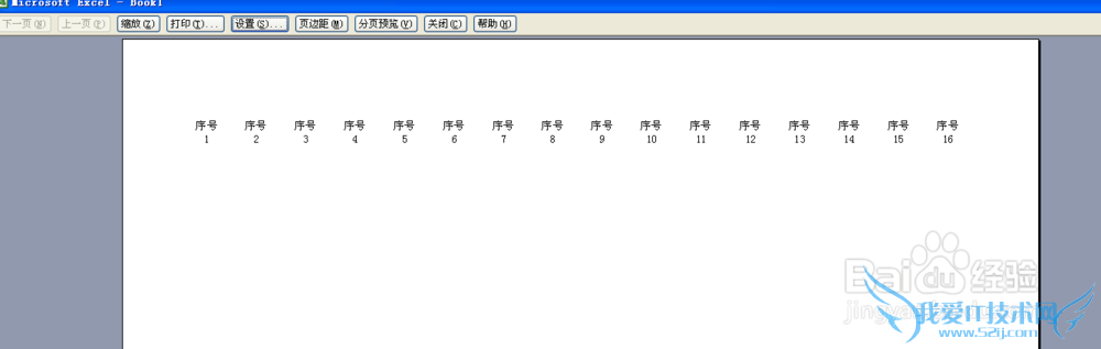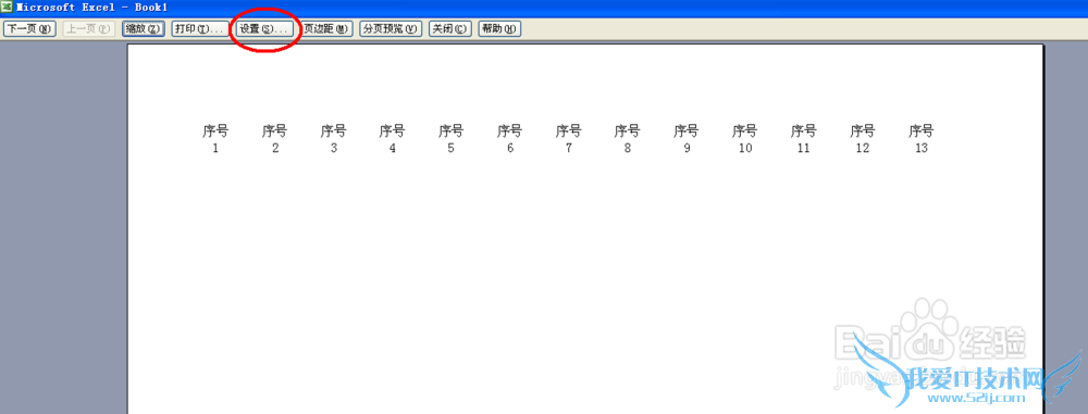 这时候我们进入打印预览(明显看到只能只能打印到序号13),点击“设置”按键