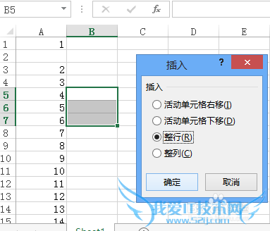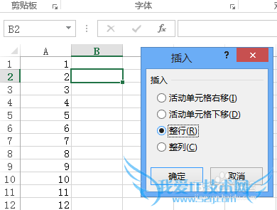 当你只选中一格时,插入时选择整行的时候: