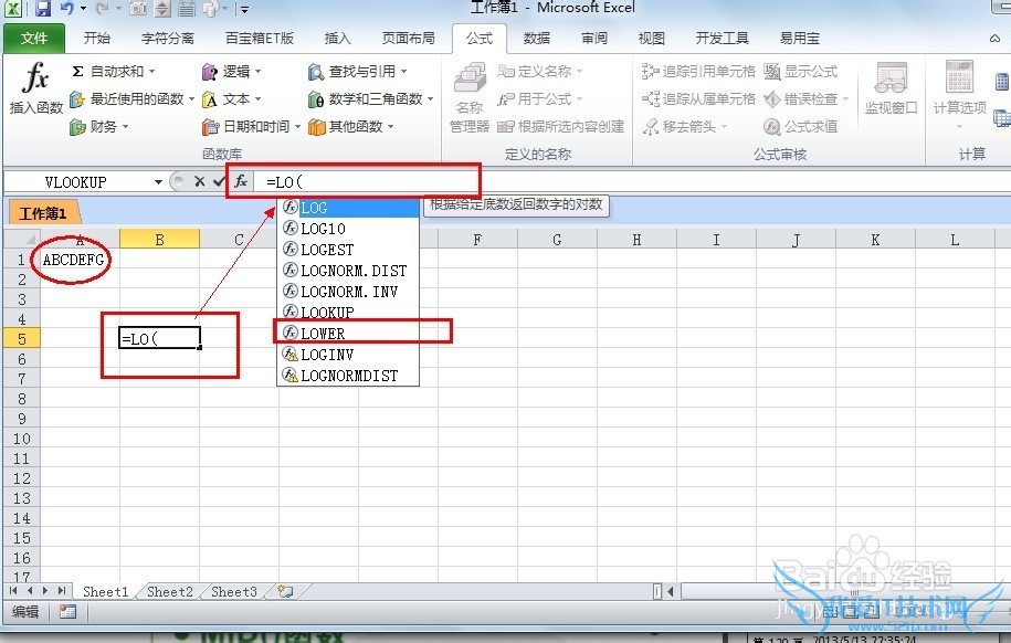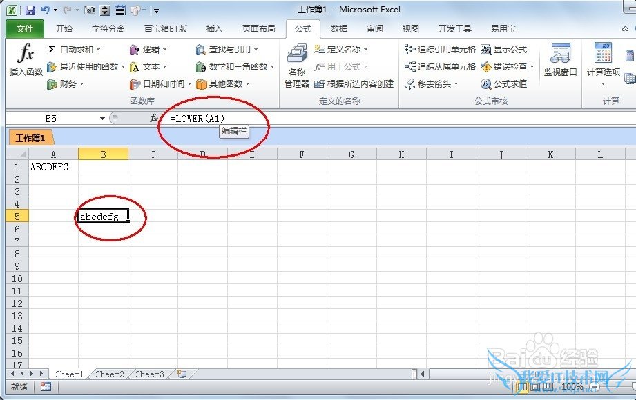 A1全是大写 要在B5中显示小写 选中B5输入=lower(A1)