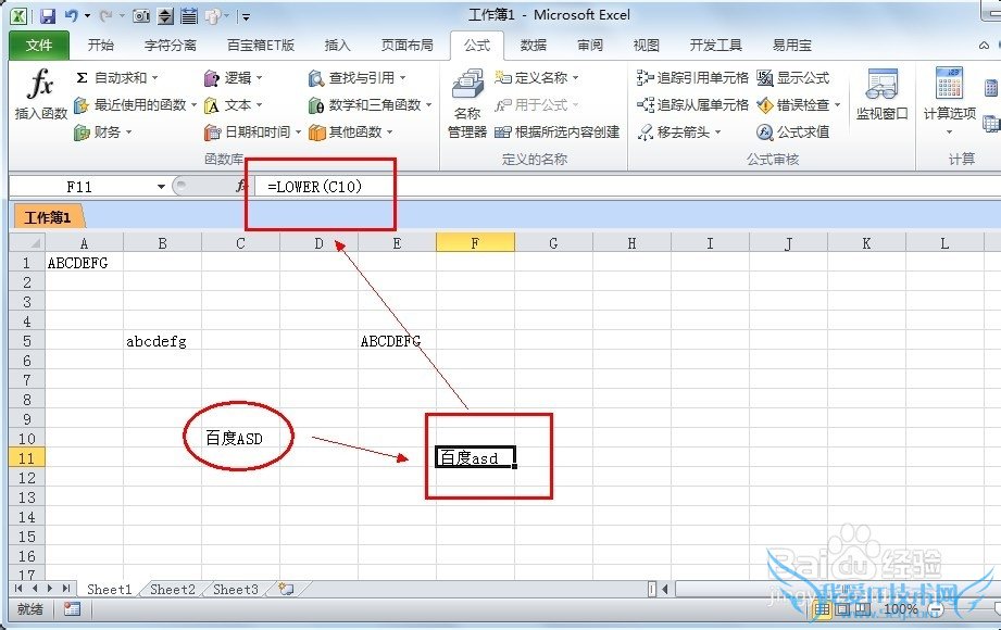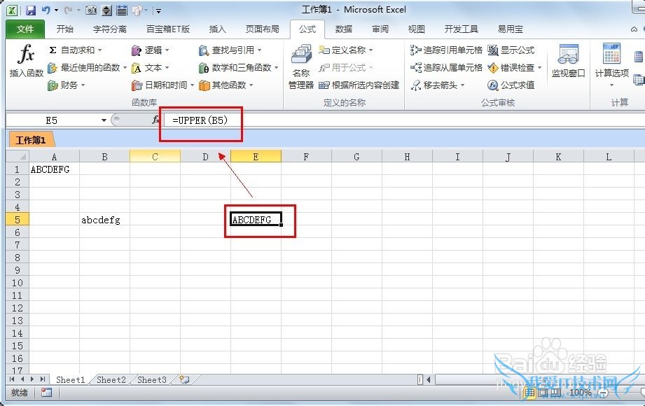 同上述步骤 输入=UPPER(B5)则转换为小写了