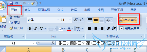 3、EXCEL2007/2010/2012/2013中可以使用快键工具栏 开始-自动换行