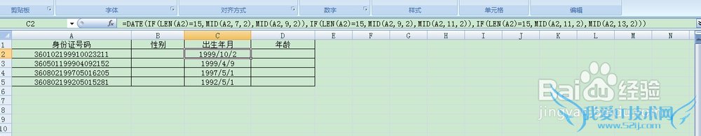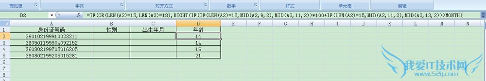 在excel中可以利用函数自动算出15位或18位身份证号中的姓别、年龄及出生年月。
