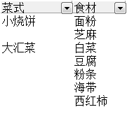 2、提取菜式。单击“菜式”旁的下拉按钮,可以选择每餐的菜式,第二列自动显示食材的组合。