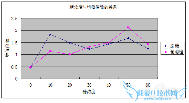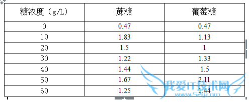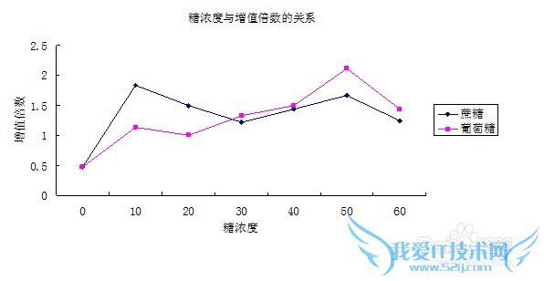 (1)将数据整理好。如下图所示,例如第三行,二列的1.83表示当蔗糖浓度为10时所对应的增殖倍数值为1.83,第三行三列则表示葡萄糖浓度为10时所对应的增殖倍数值。