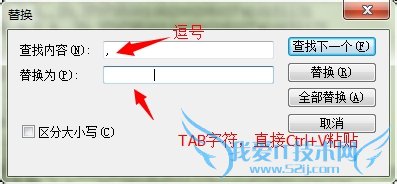 把刚才复制的tab字符复制到 替换内容。如图: