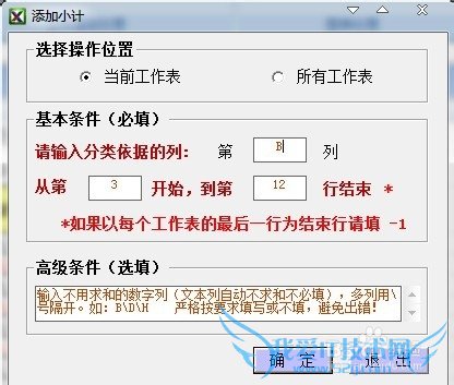 【高级条件】可以不填,有时我们并不希望每一列的数字下面都求和,如果有这个需求可以根据要求进行设置
