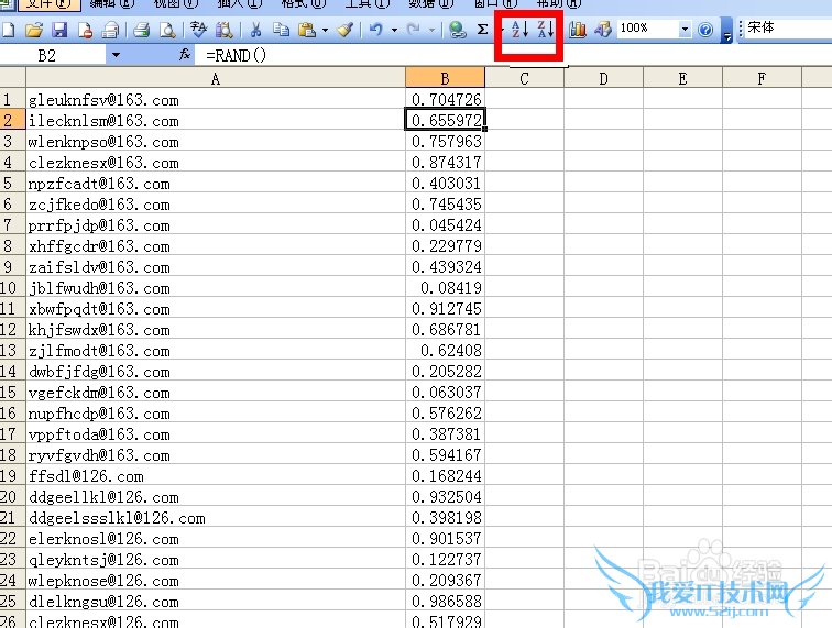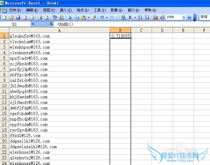 以前在群发邮件的时候,自己所有的邮件地址大部分都是同一后缀域名的地址排在一起,为了提高邮件成功送达率,最好是将邮件地址打乱,让不同域名的邮箱地址混合在一起,这个可以利用excel的一个rand函数来处理。下面就介绍一下方法。
