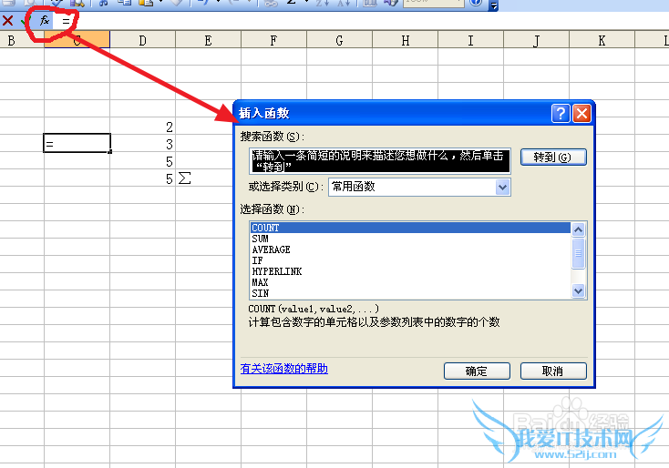 第三种方法:点击编辑框左边的fx小图标,会弹出插入函数对话框。