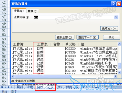 在工作组中进行查找。如果仅选择了工作簿中的部分工作表,这些工作表将成为一个工作组,Excel会仅在这些工作表中进行查找。