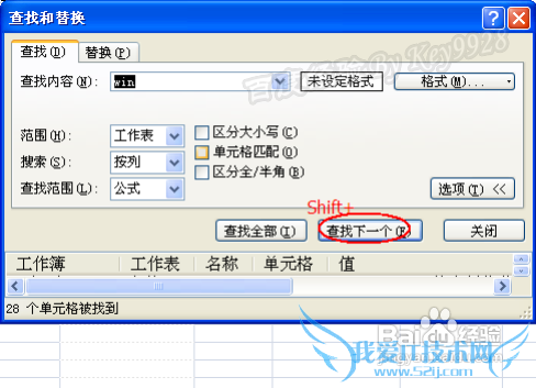 按Shift键反方向查找。当在“查找和替换”对话框中单击“查找下一个”按钮时,Excel会按照某个方向进行查找。如果在单击“查找下一个”按钮前,按住Shift键,Excel将按照与原查找方向相反的方向进行查找。