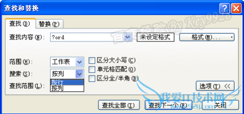 选定某些行或列,在“查找和替换”对话框选择“搜索”为“按行”或“按列”能缩小搜索范围,加快搜索: