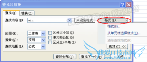 按单元格格式查找。单击“查找和替换”对话框中“格式”按钮右侧的小箭头,在弹出的下拉列表中选择“从单元格选择格式”,然后选择一个包含所需查找格式的单元格,即可按选定的格式进行查找。