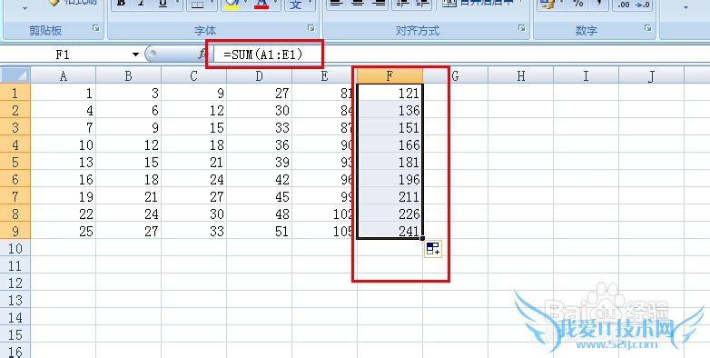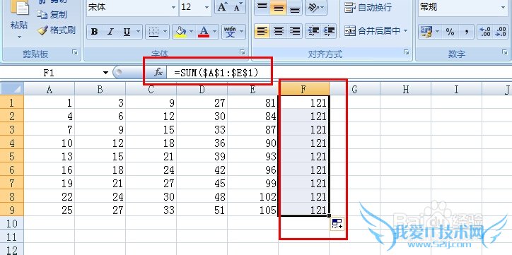 绝对引用。绝对引用无法通过拖动来应用相关公式。对上述的求和公式,其输入形式为=sum($A$1:$E$1)(或在上方的fx处选择A1:E1后按F4键)。此时向下拖动其数值不会发生变化。
