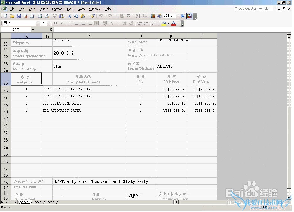 此时,我们可以将相应固定内容扫描,作为背景插入Excel表格,作为排版参考;这样打印时背景不会打印出来,相应填充的内容又可以精确定位;