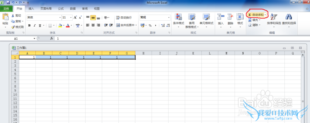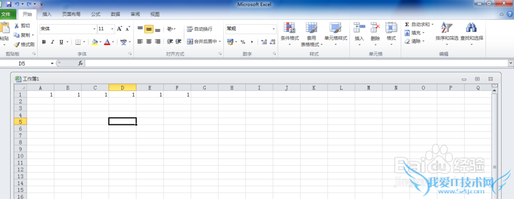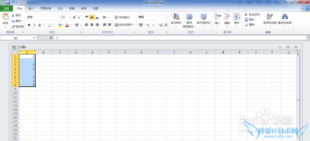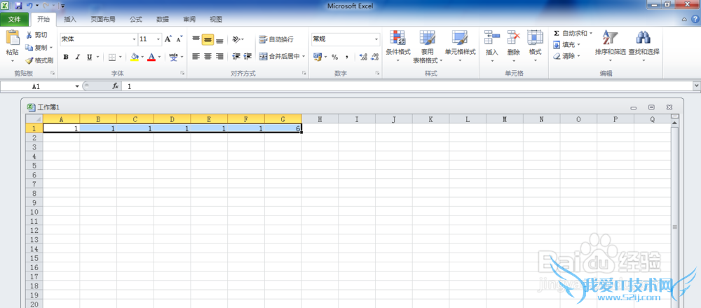 首先启动 excel软件,在软件第一排表格中输入任意数字