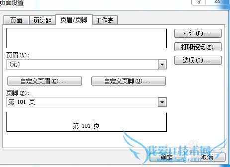 如图所示,在“页”前输入“+100”,这样就实现重101页开始设置你工作表格的页码