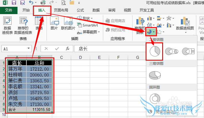 选中需要制作饼图的数据,包括最下面的辅助行,然后依次点击 插入,饼图,饼图: