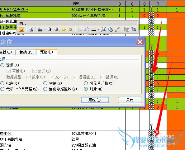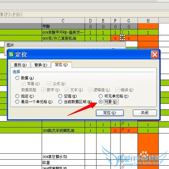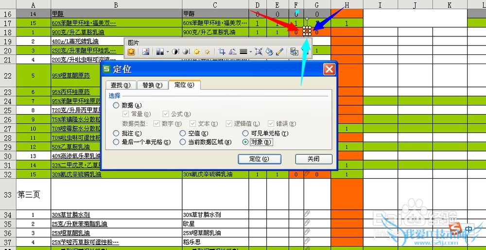 选中对象后,点击你要删除的图片,任意一个,我图中的那个就是一个小图片 FG之间的那个然后点击 定位