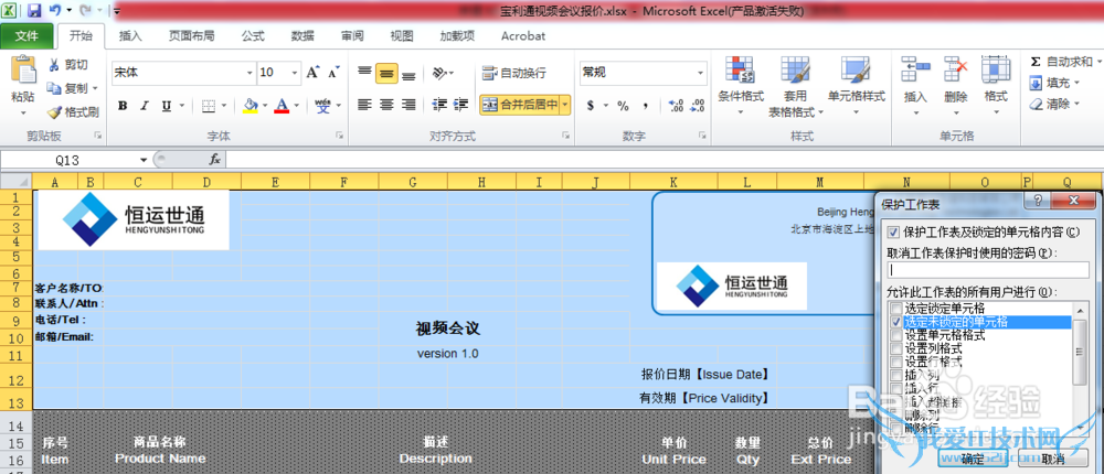 五、选择用户操作的权限,然后设置密码。这样其它用户在没有密码的前提下时无法修改锁定单元格的内容。