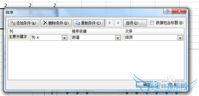 3、排序设置好后,会弹出一个对话框,在里输入相关数值,即可