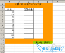 类别:excel教程 发布时间:16-04-01 点击:1898今天有同事问我如何比较快速的计算符合要求的数值的个数,他知道的方法就是利用IF函数的判断,不过还需要进行多步操作或者使用多个函数,突然之间,我就想到了可以利...