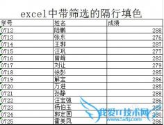 excel中有时要对内容进行筛选,筛选完后,为了方便查看,采用隔行填色,excel中怎样将这两种功能混合运用详细的操作方法或具体步骤某班级学生成绩,如表中所示,要找...