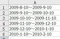 类别:excel教程 发布时间:16-04-01 点击:1998某单元格数据为2009-08-10~2009-09-10,我希望下一单元格2009-09-10~2009-10-10,再往下按规律递增,如何用Excel序列填充实现?详细的操作方法或具体步骤运行Excel,新建...