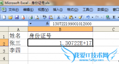 类别:excel教程 发布时间:16-04-01 点击:1760经常使用Excel登记个人信息,一般就是姓名、身份证号、出生日期、性别等,Excel中单元格默认为“数字”格式,输入长数字的身份证号时,单元格内显示的是科学记数法的...