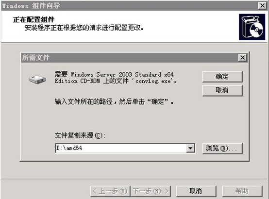 点击图片中的“浏览”选中“C:/win2003_sys/disc1/AMD64”如图