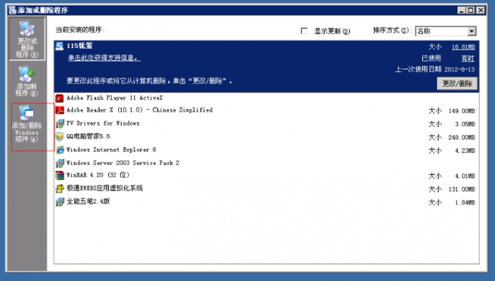 出现如下界面点击“添加/删除windows组件(a) ”如图