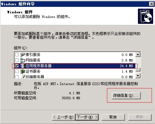 出现上面的图片“选中internet 信息服务(iis)” 点击图片中的“详细信息”