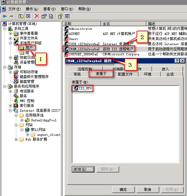 2.2 应用程序池所属用户不在IIS_WPG组 或者IIS_WPG组权限异常 其余的情况需要具体情况来具体分析