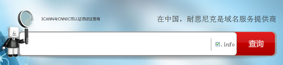 打开链接后可以看到一个域名注册查询框,只要在里面输入想注册的域名就可以及时查询域名的注册情况。