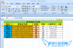 类别:excel教程 发布时间:16-04-04 点击:1885我们这有一份某车间员工名单,现在要求利用员工的入职时间来确定其工龄和工龄工资,是不是需要一个一个的计算输入呢,答案当然是否定的。我们现在用Excel2007来演示...