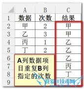 Excel把单元格数据重复指定次数显示在另外一列-Excel