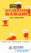 今天是小年,阿里支付宝钱包推出了新年亿元红包的抢红包活动,只要在手机上下载安装最新的支付宝钱包,就可以进行抢红包了。抢红包时间分别为11号10:00,16:00,20:00...