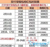 昨日(9号)一大早,支付宝钱包宣布将在春节期间发放6亿元的红包。其中,现金超过1.56亿元,购物消费红包约4.3亿元。详细的操作方法或具体步骤支付宝钱包在2月11日至...