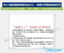 欢迎您访问我爱IT技术网,今天小编为你分享的电脑教程是office系列之word教程:【将换行符替换成回车符:Word查找替换高级玩法(01)[word学习]】,下面是详细的分享...