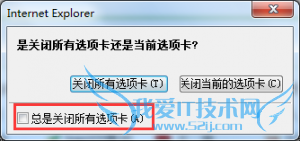 4、此时系统会弹出警告,勾选“总是关闭所有选项卡”前面的勾,这样就关闭掉了多个选项卡的警告。