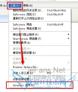 1、打开IE8浏览器,点击“工具”在弹出的下拉框中找到“Internet 选项”。<>