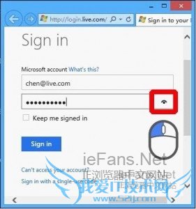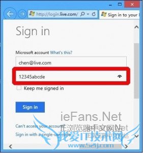 各位应该都和小编一样有过由于输错1个字符而把所有的密码全部删掉的经历吧,假如密码短还好,但若长密码就无解了,是不是觉得很憋得慌,别急,下面小编告诉你个小经验,你只需要下载一个Windows 8,然后在里面安装IE10,立马就能解决这问题,windows 8系统中的IE10可以让“密码重现”,当你发觉输错密码,左击一下输入框右侧的“可视”按钮即可显示刚刚输入的全部密码,方便你逐字修改错误字符,无需再将所有密码删除重复输入,省时又省力。虽然Windows 7系统中也支持安装IE10,不过该版本IE10不支持密码可视的功能。<>
