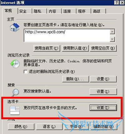 2、进入Inetnet选项后,然后在常规项的选项卡中找到“更改网站在选项卡的显示方式”,点击此选项进入设置;