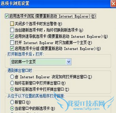 答:菜单-工具-Internet选项-常规,找到选项卡,单击设置,底部从位于以下位置的其它程序打开链接,选择当前窗口中的新选项卡,选新窗口,每次单击链接时会打开新的窗口 >>详细