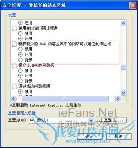 再打开的选项卡里,选择启用“特权较少的Web内容区域中的网站可以定位到该区域选项”,就能解决打开网站总弹出的这些警告。